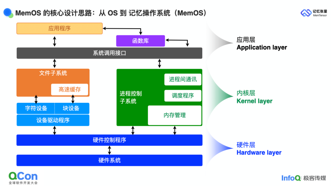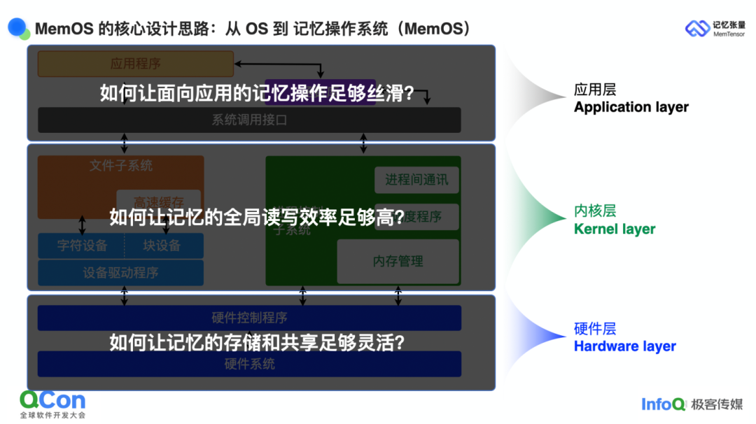 既然我们给自己定的目标是打造一套"记忆操作系统",至少也得是 Tiny-OS 级别,那就必须像传统操作系统那样,把整体框架拆成清晰的分层。从硬件到内核再到应用,每一层都对应记忆场景里的关键问题: