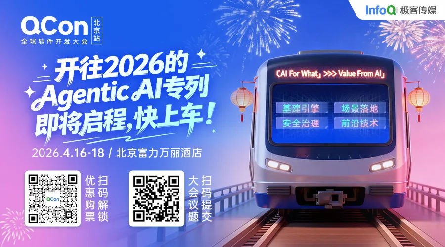 QCon 北京 2026 已正式启动,本届大会以"Agentic AI 时代的软件工程重塑"为核心主线,推动技术探索从「AI For What」真正落地到可持续的「Value From AI」。从前沿技术雷达、架构设计与数据底座、效能与成本、产品与交互、可信落地、研发组织进化六大维度,系统性展开深度探索。开往 2026 的 Agentic AI 专列即将启程!汇聚顶尖专家实战分享,把 AI 能力一次夯到位!